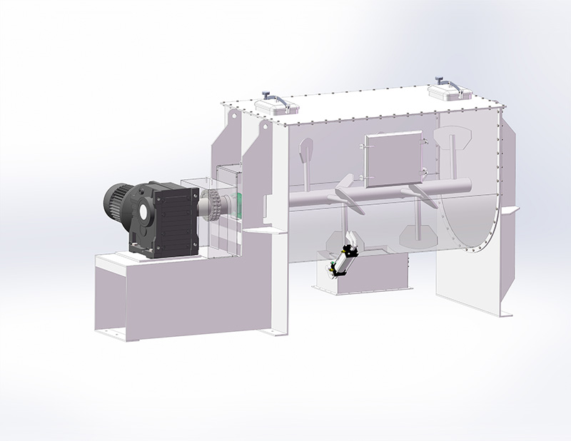 該機由傳動機械,臥式筒體,犁刀和飛刀組等四部份組成。旋轉的飛刀強烈拋散,在犁刀和飛刀的復合作用下,從而在極短的時間內達到均勻的混合。